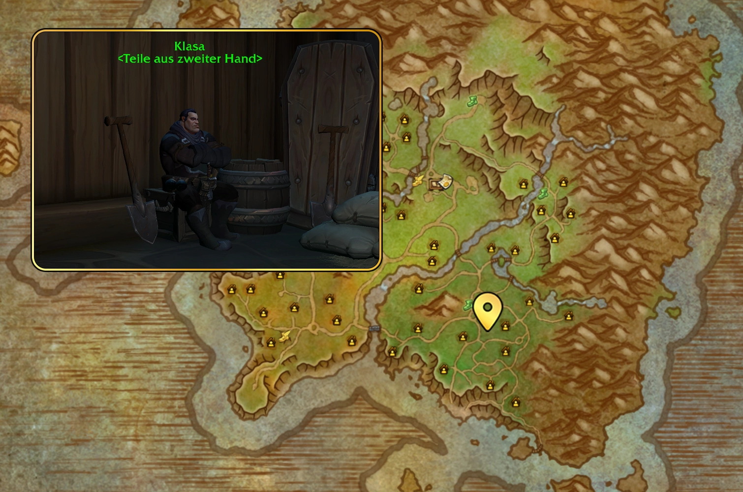 Ingame Pin: /script DEFAULT_CHAT_FRAME:AddMessage(„\124cffffff00\124Hworldmap:2352:5820:6160\124h[\124A:Waypoint-MapPin-ChatIcon:13:13:0:0\124a Klasa-Kartenmarkierung]\124h\124r“);Ingame-Pin