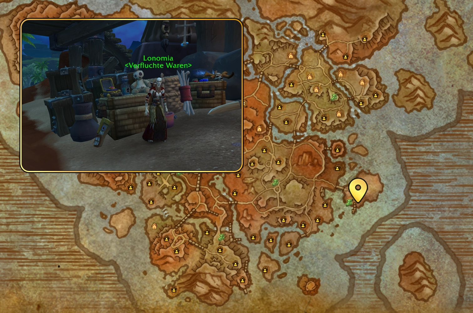 Ingame Pin: /script DEFAULT_CHAT_FRAME:AddMessage(„\124cffffff00\124Hworldmap:2351:6820:7559.999999999999\124h[\124A:Waypoint-MapPin-ChatIcon:13:13:0:0\124a Lonomia-Kartenmarkierung]\124h\124r“);Ingame-Pin