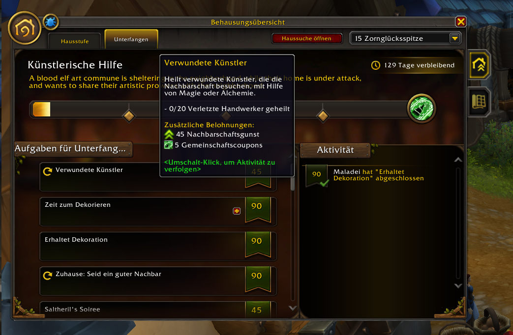 Die Questreihe, welche euch an den Hauskauf und das Dekorieren heranführt beginnt direkt nach dem Einloggen und umfasst vier simple Quests: