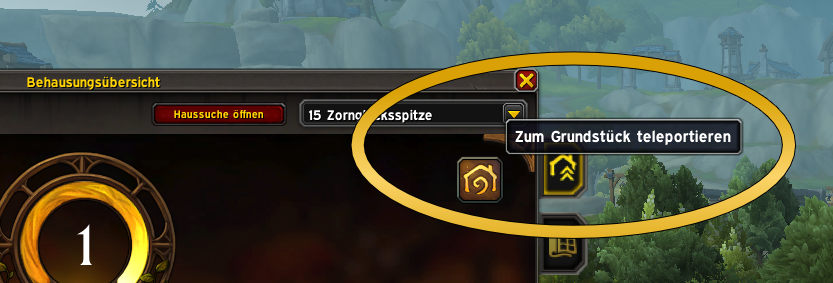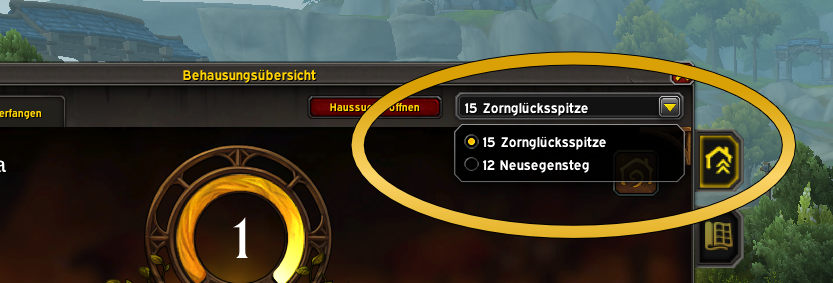 - Den Umschalter bzw. die Auswahl für das Allianz- bzw. Hordehaus (rechts oben über dem Port-Button)